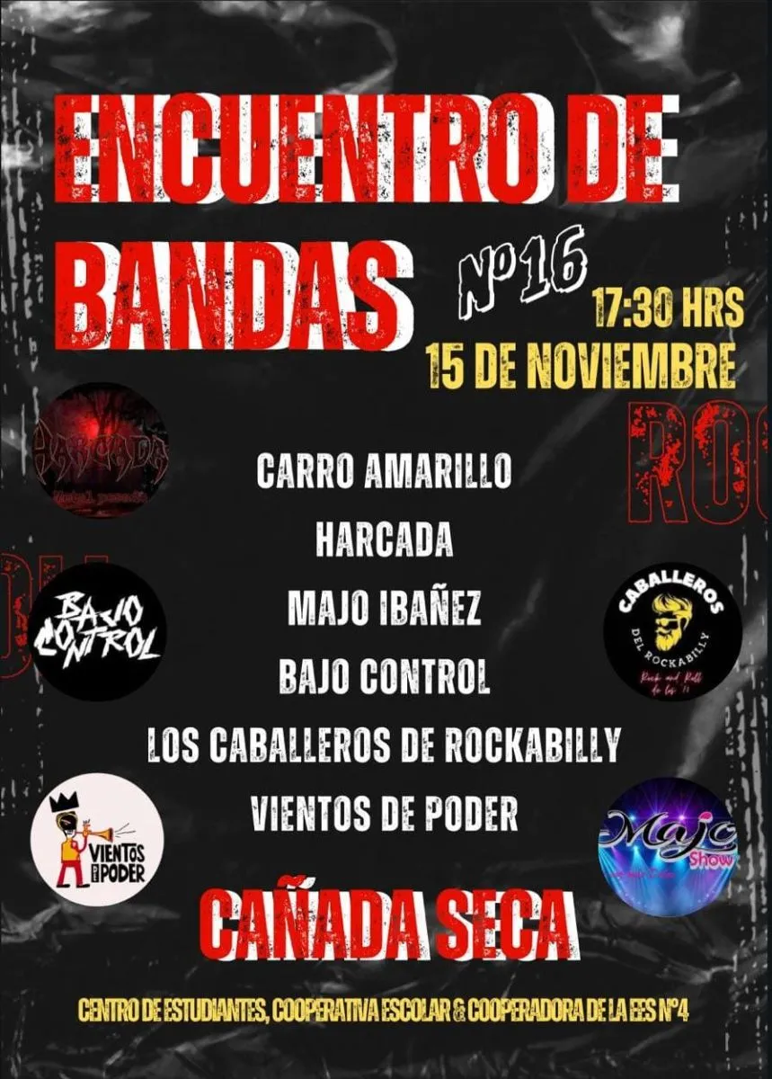 Con la organización del Centro de Estudiantes Cañadenses, la cooperativa escolar y la asociación cooperadora de la Escuela N°4, se espera recibir gran afluencia de público a éste encuentro que comenzará a las 17,30 hs. del sábado 15 y contará con stand de artesanos y emprendedores, servicio de cantina y por supuesto mucha música y diversión con la actuación de seis bandas de la región. Como siempre, la entrada es libre y gratuita.