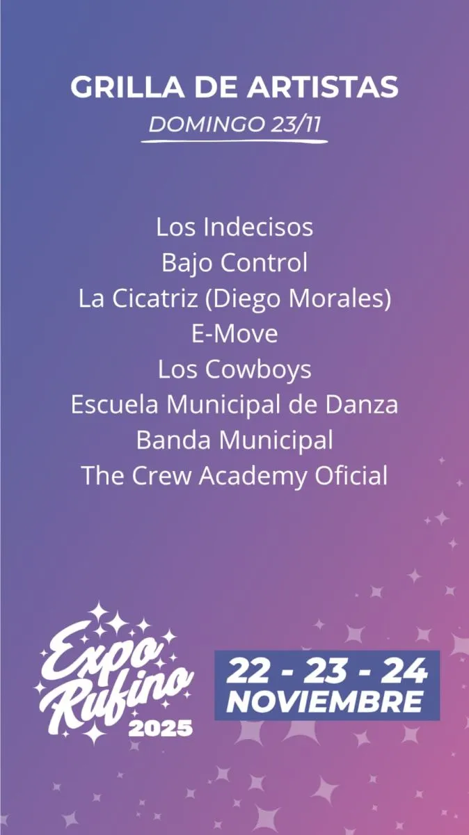 La Municipalidad de Rufino dió a conocer la grilla de actividades y artistas que pasarán por el escenario de la Expo