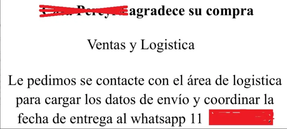 Una vez que el cliente se comunica por wsp, le envían datos para transferir nuevamente el dinero, especificando que con transferencias realizan un descuento importante (en mi caso 15%).