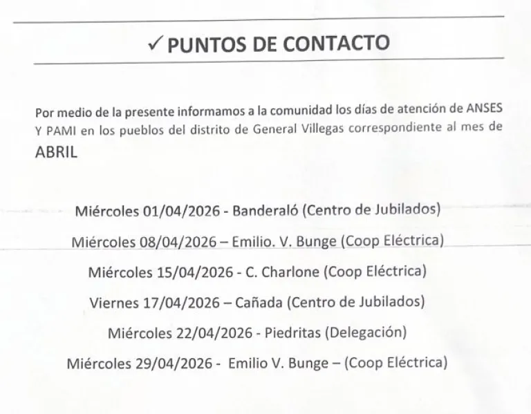 El Comunicado de Anses y Pami establece los días en que atenderá en cada localidad.